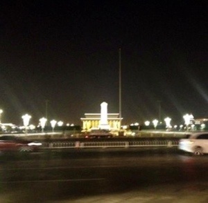 Tonight, it was completely empty. Not a single person was on the Square as I biked by, just a lone white police van parked in front of the Monument to the People’s Heroes, facing against traffic.